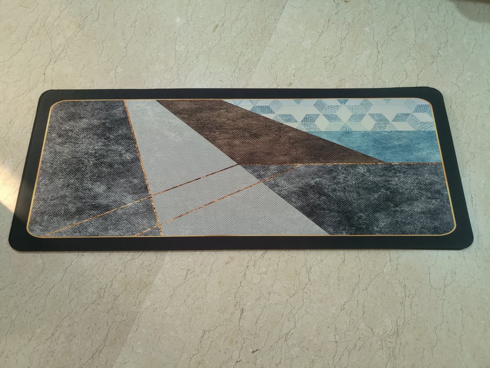 Add style and comfort to your kitchen with this elegant kitchen runner. Designed in a classic black and gold border pattern, it enhances your space with a touch of luxury. Crafted with durable material and an anti-slip backing, it ensures safety while you work in the kitchen. Easy to clean and maintain, this runner is perfect for protecting your floor from spills, stains, and daily wear.