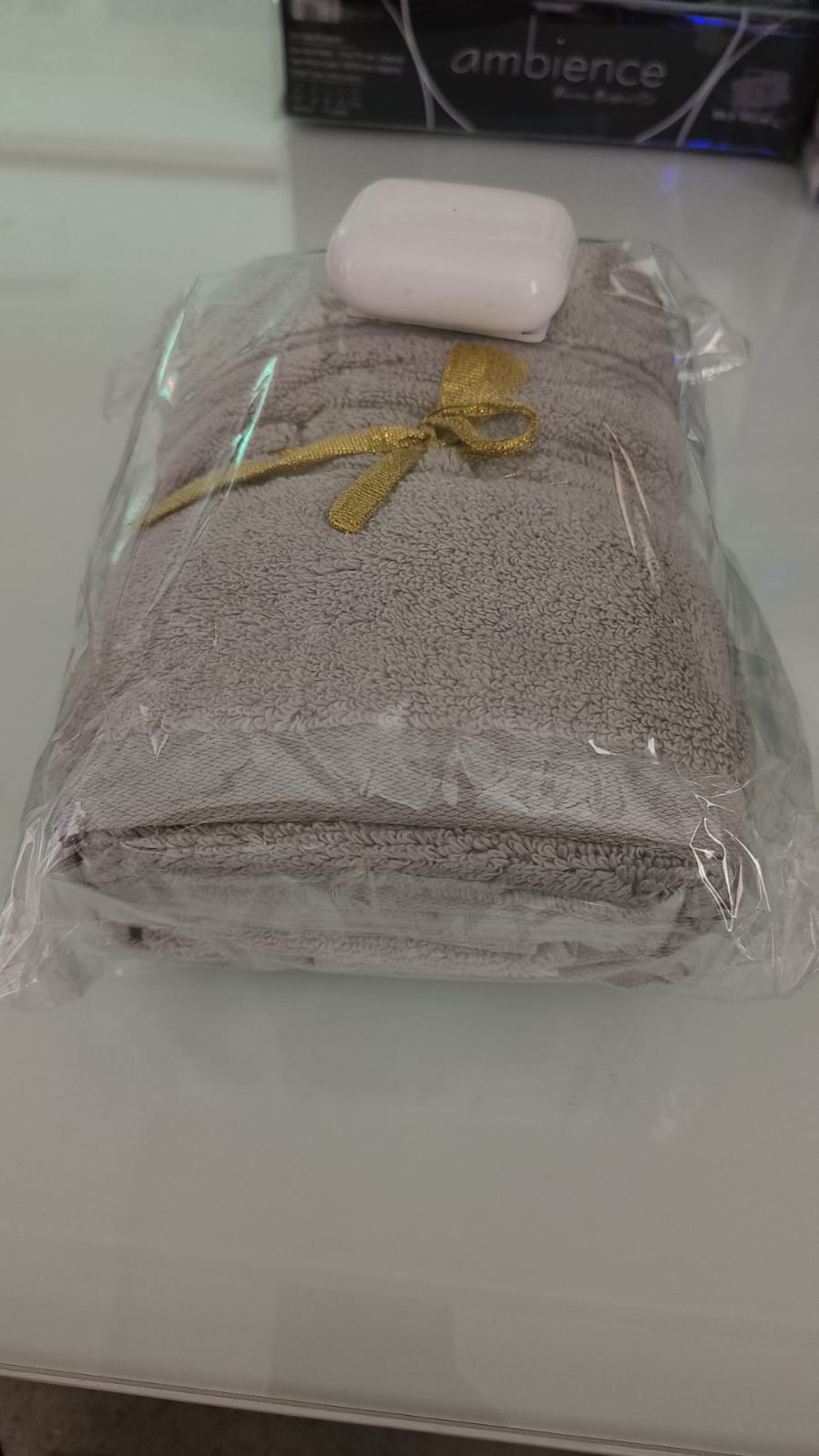 Whether placed in your bathroom, wash basin area, or carried in your gym and travel kit, this hand towel strikes the perfect balance between practicality and luxury. Wrapped with a golden ribbon, it also makes an excellent gifting choice for housewarmings, weddings, or festive occasions.